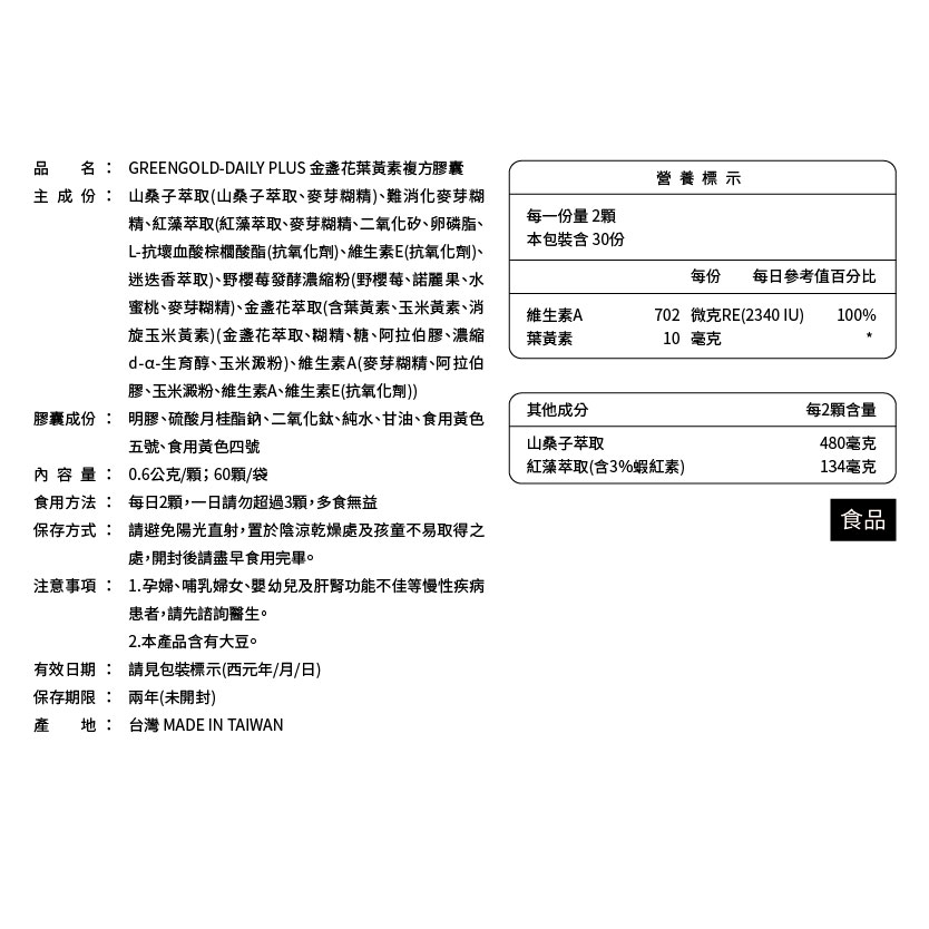 D.3 PLUS金盞花葉黃素複方膠囊(60顆/袋)X2袋 (下單數量1即為2袋)