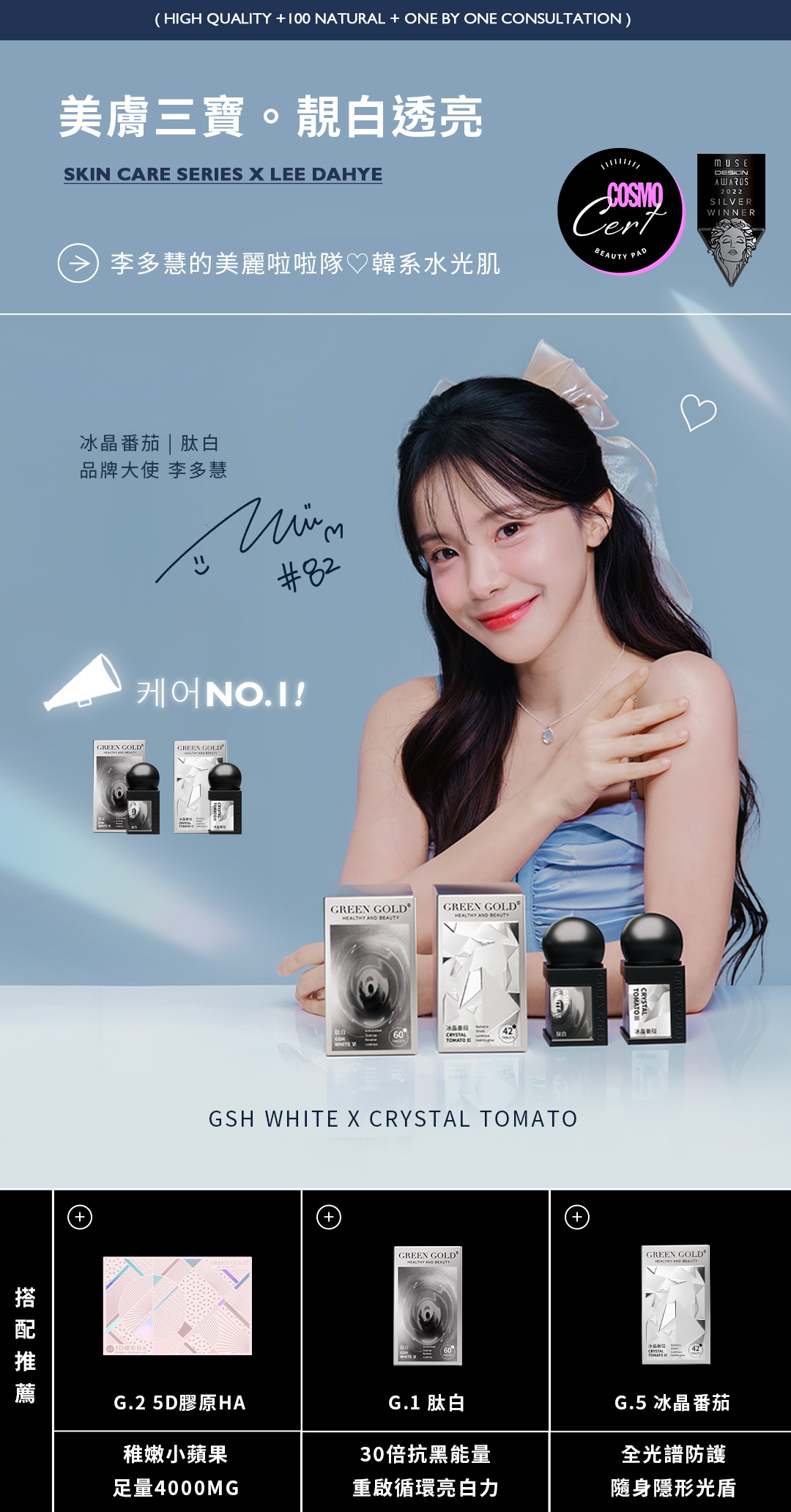 G.5 冰晶番茄III (42顆/盒)X1盒+G.1 肽白VI (60錠/盒)X1盒 + G.2 5D膠原HA(21包/盒)X1盒+5D膠原HA體驗X1包➔ 加入【1對1保健萬事通】24小時隨你問問題... NT5,488 NT4,920