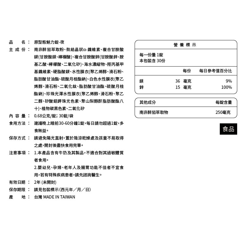 M.1 原型態魅力錠 ⊘日夜錠每日各1顆;日錠早餐後食用、夜錠睡前30分鐘食用