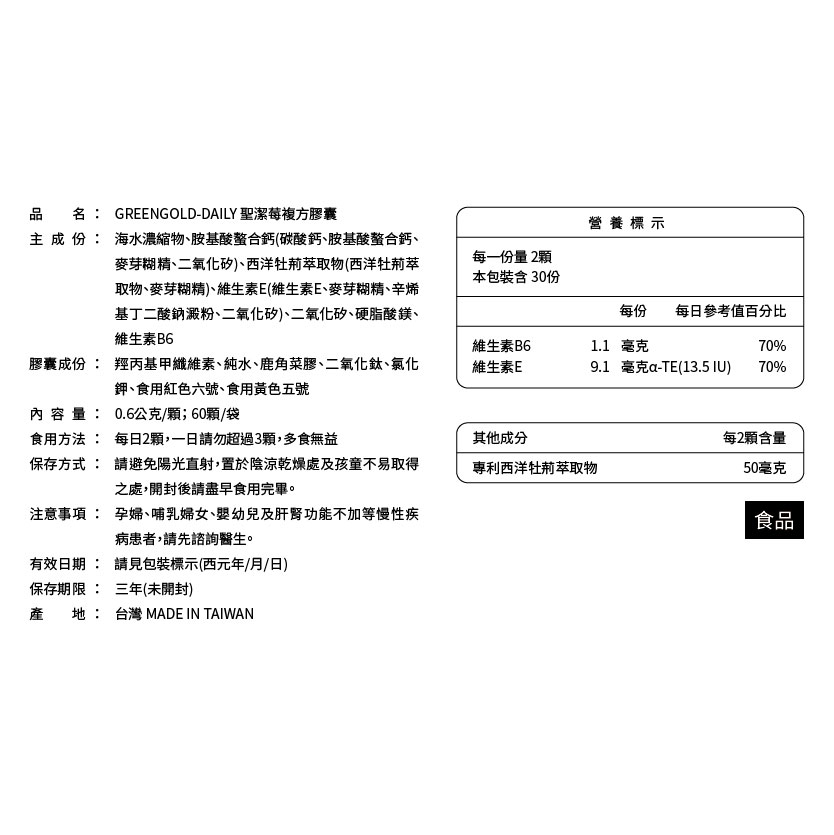 品名 : GREEN GOLD-DAILY 聖潔莓複方膠囊