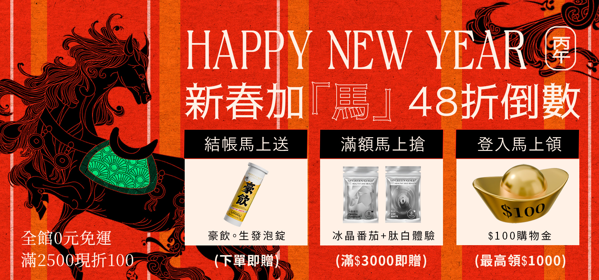 - 滿 NT2,500 / 折扣 NT100