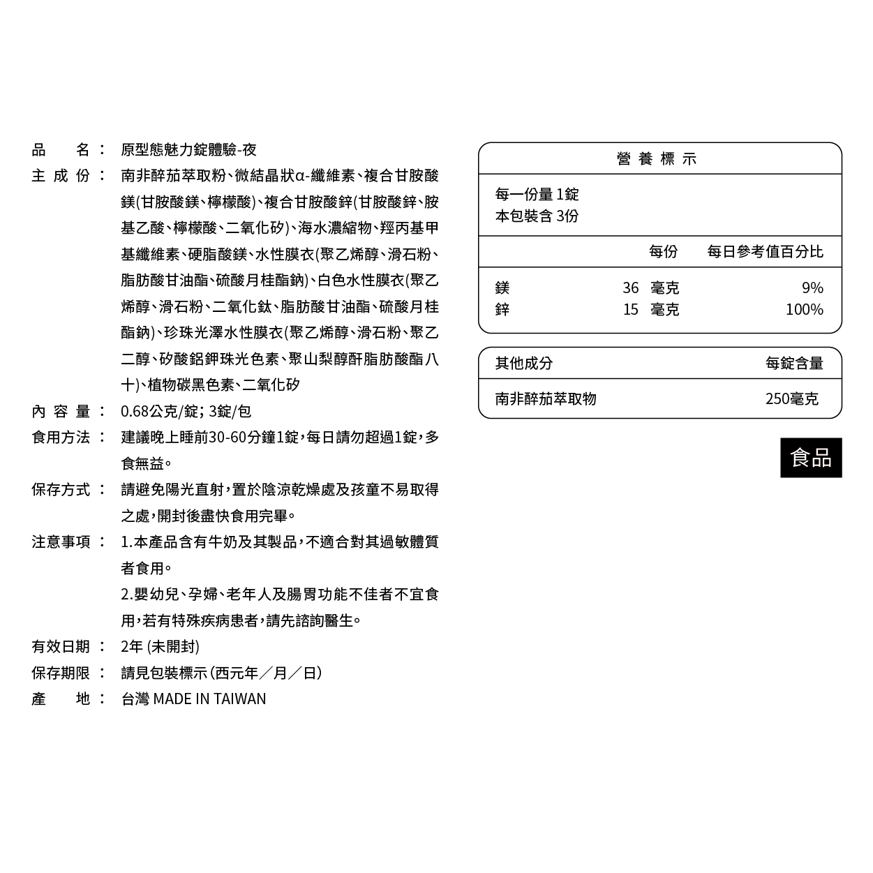 品名 : 原型態魅力錠-夜