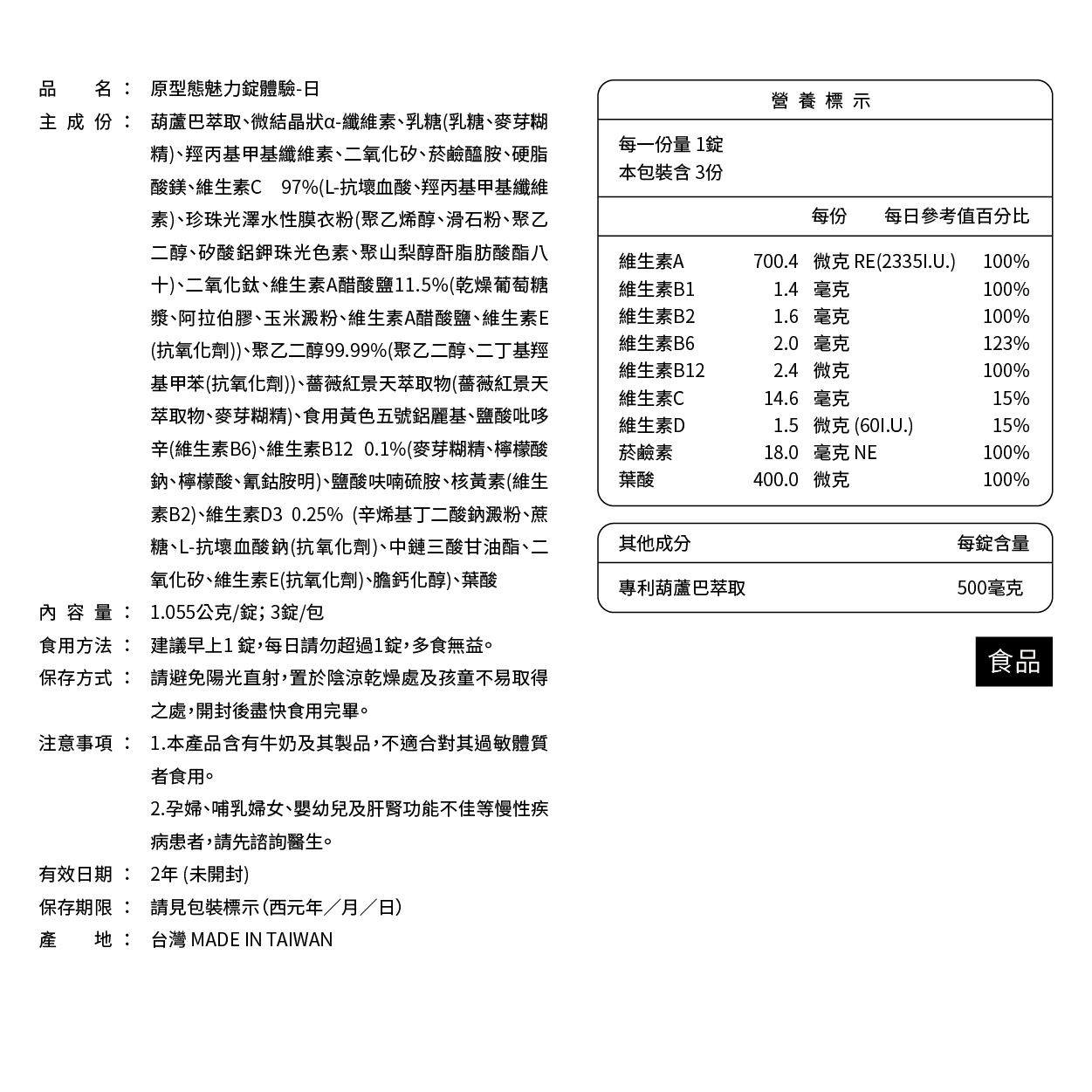 品名 : 原型態魅力錠-日