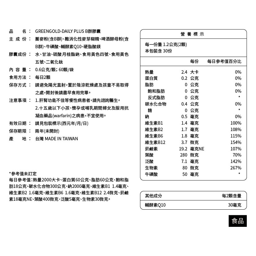 品名 : GREEN GOLD-DAILY PLUS B群膠囊