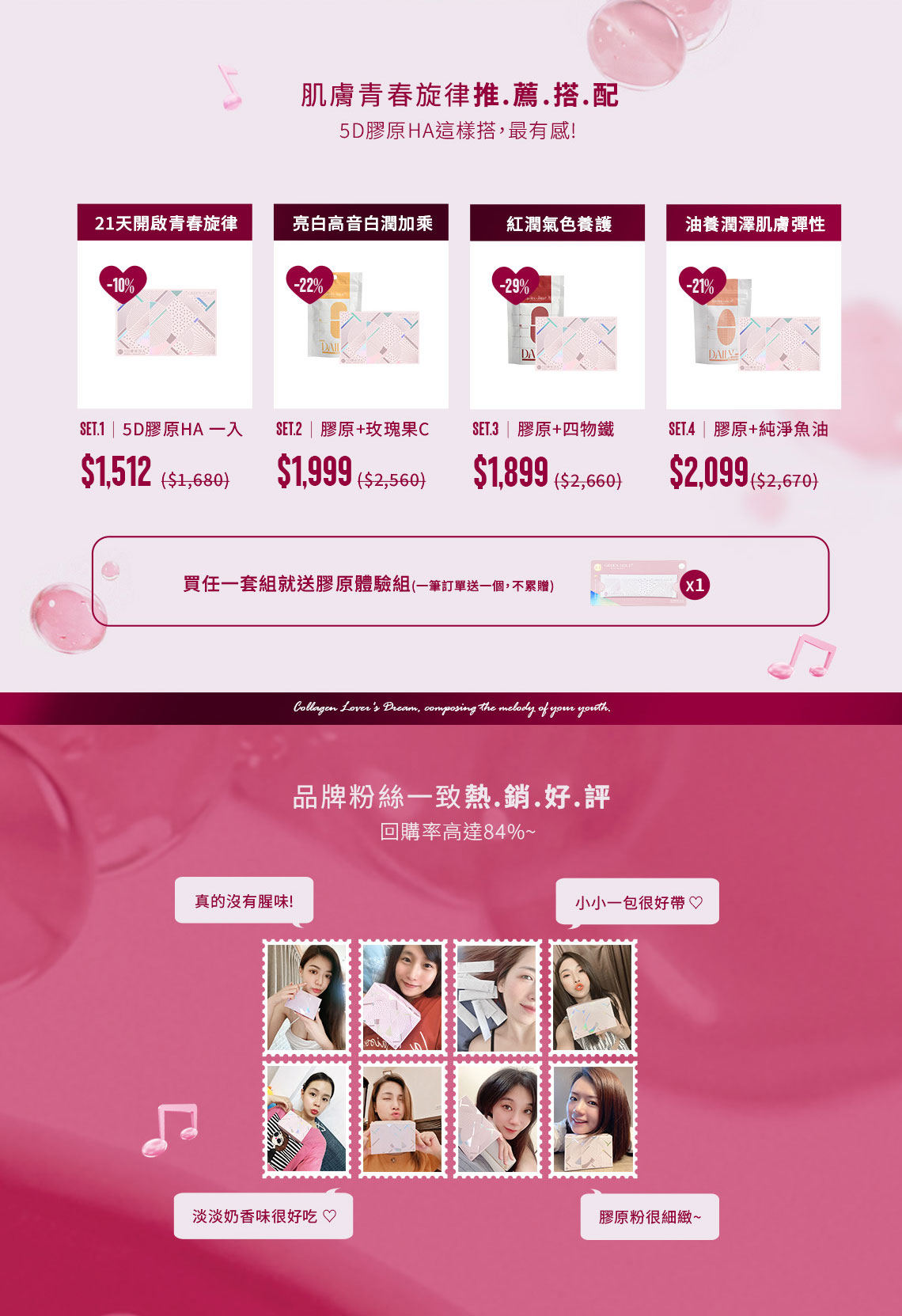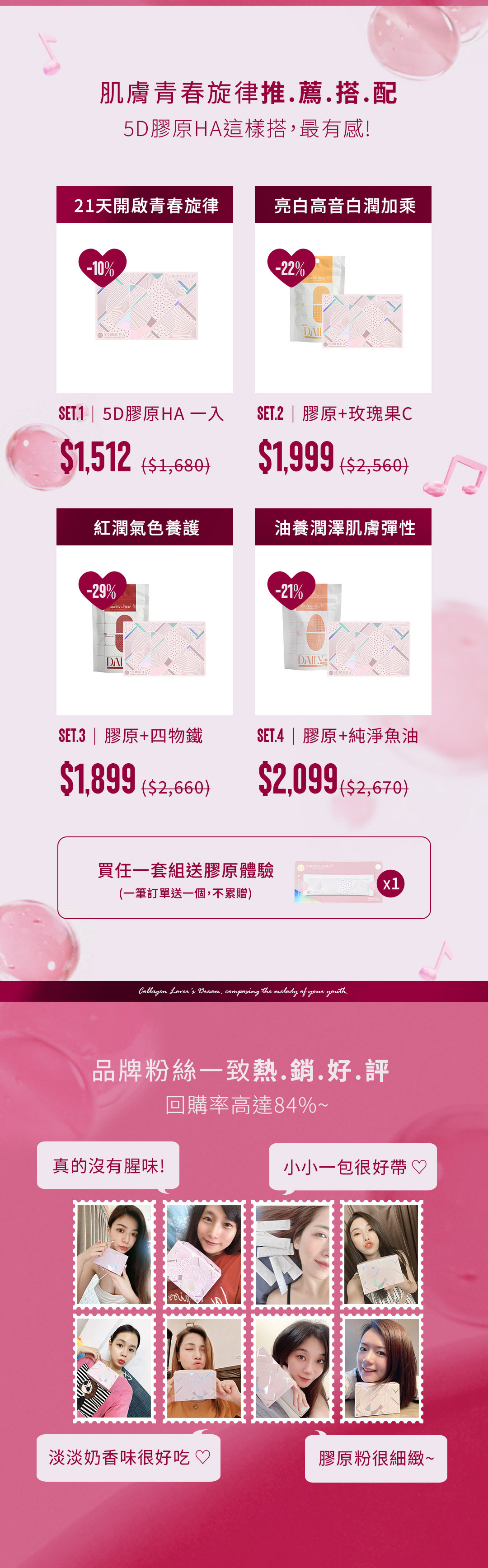 全館免運|滿$2000免運(外島、海外不適用) 新客嘗鮮|註冊會員送$200購物金 紅利現折|購物金滿千可折百,折抵無上限 限定贈品|購買此套組送5D膠原體驗*1 商品介紹|PRODUCT intro... NT3,360 NT2,856