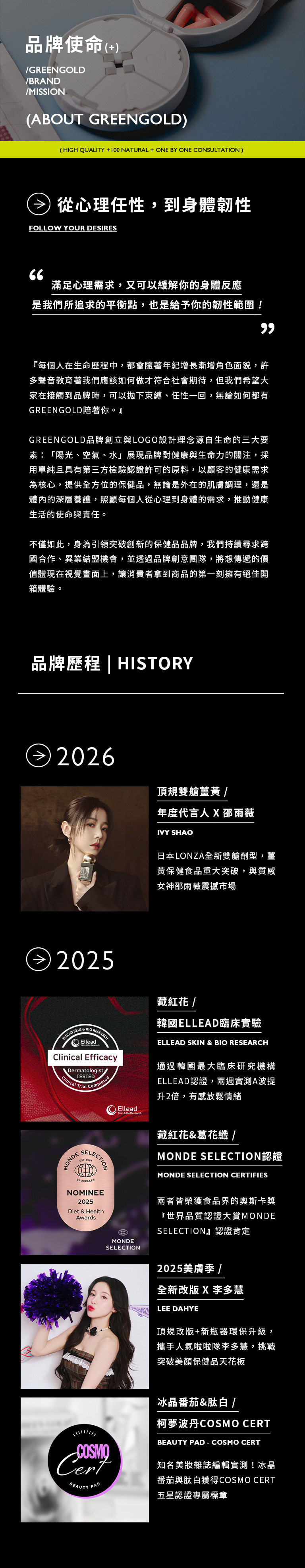 品牌使命 | GREENGOLD|全方位機能性保健食品